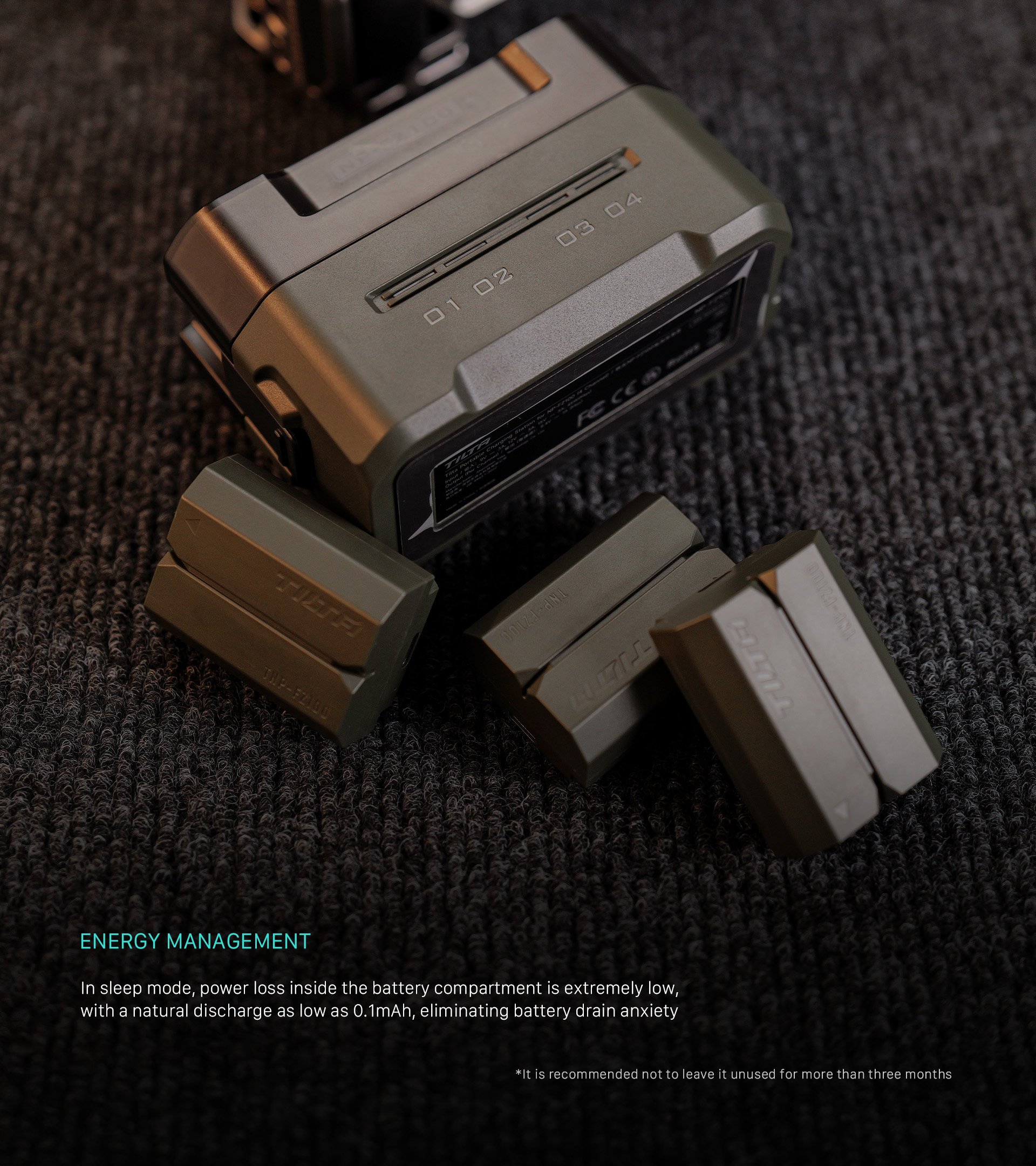 Die tragbare Ladestation von Tilta zeichnet sich durch ein EDC-ähnliches Design mit der charakteristischen Ästhetik von Tilta aus und ist somit eine stilvolle und funktionelle Ergänzung zu Ihrer Ausrüstung.