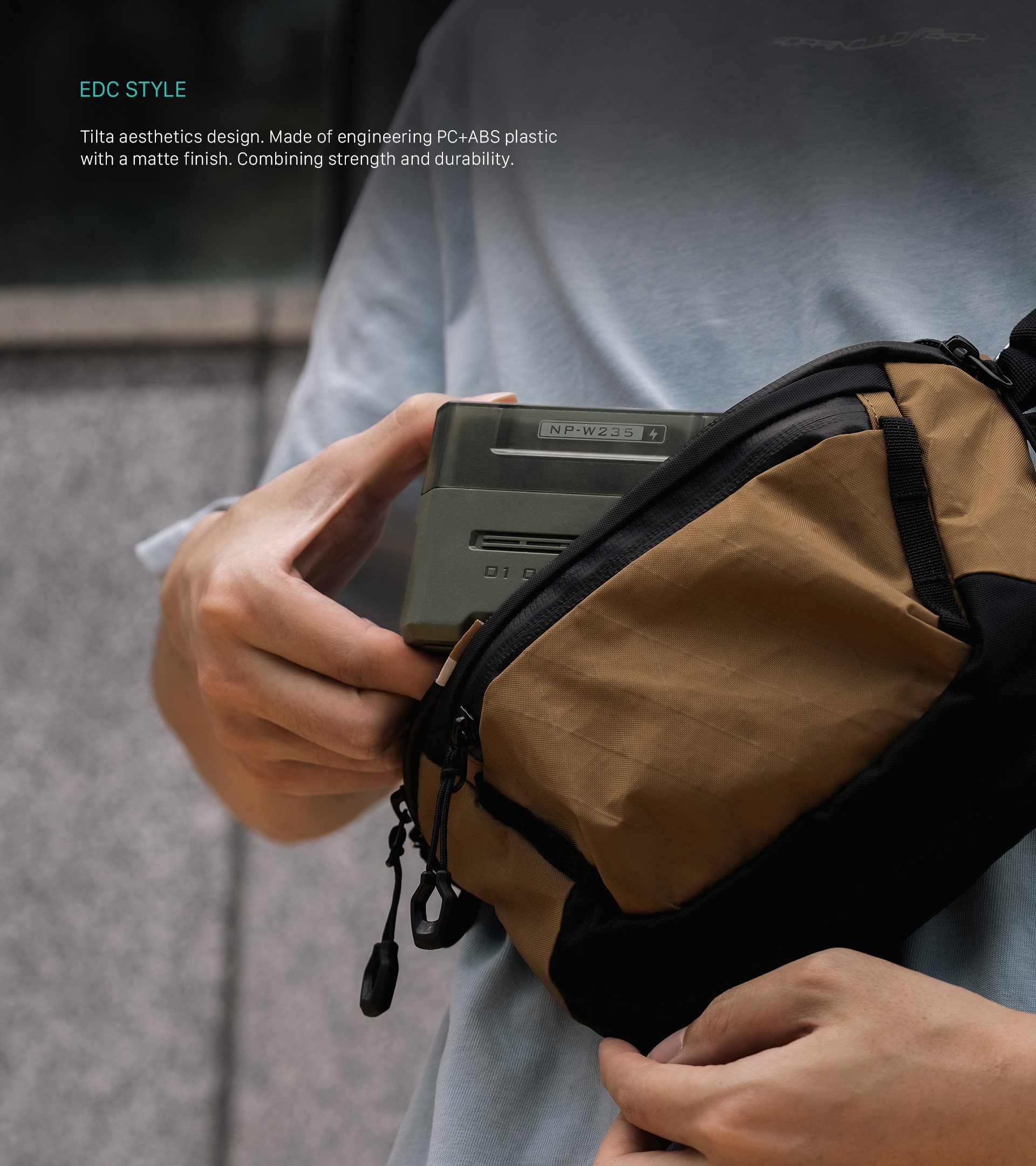 Die tragbare Ladestation von Tilta zeichnet sich durch ein EDC-ähnliches Design mit der charakteristischen Ästhetik von Tilta aus und ist somit eine stilvolle und funktionelle Ergänzung zu Ihrer Ausrüstung.
