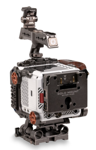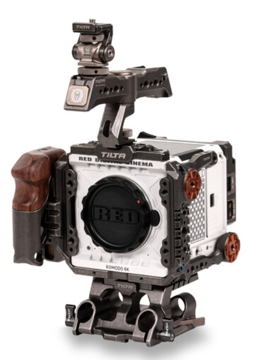 Die Gold Mount-Batterieplatte bietet eine professionelle Stromversorgungslösung, wodurch das KOMODO-System besser für Langzeitproduktionen geeignet ist. Mit dem rechten Holzgriff für verbesserte Ergonomie, dem Quick Release Top Handle für dynamische Bedienung von oben, einer neigbaren Cold Shoe-Monitorhalterung, der 15-mm-LWS-Basisplatte und einer Arca-Schnellwechselplatte ist dieses Kit für praktisch jedes Produktionsszenario geeignet.