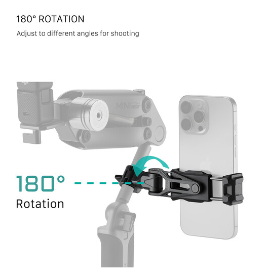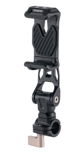 Die Tilta TA-PMB5-15K-B drehbare Handyhalterung V2 mit 15-mm-Stangenhalterung ist eine professionelle Smartphone-Klemme (für Handys mit einer Breite von 3 bis 3,8 Zoll) mit vollständiger 360°-Drehbarkeit und silikongepolsterten Backen, kombiniert mit einem einzelnen 15-mm-Stangenadapter mit verdrehsicheren Fixierstiften – ideal für die Befestigung Ihres Handys als Regiemonitor, Drahtlosempfänger-Display oder Gimbal-Gegengewicht direkt an jedem 15-mm-LWS-Stangen-Rig oder dem Hydra Alien Mini-Mittelarm.