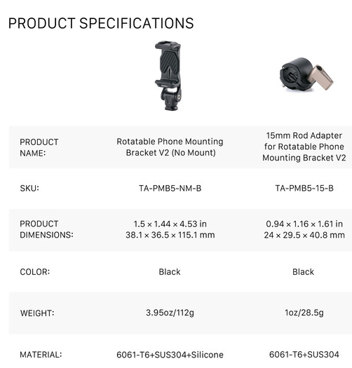 Die Tilta TA-PMB5-15K-B drehbare Handyhalterung V2 mit 15-mm-Stangenhalterung ist eine professionelle Smartphone-Klemme (für Handys mit einer Breite von 3 bis 3,8 Zoll) mit vollständiger 360°-Drehbarkeit und silikongepolsterten Backen, kombiniert mit einem einzelnen 15-mm-Stangenadapter mit verdrehsicheren Fixierstiften – ideal für die Befestigung…