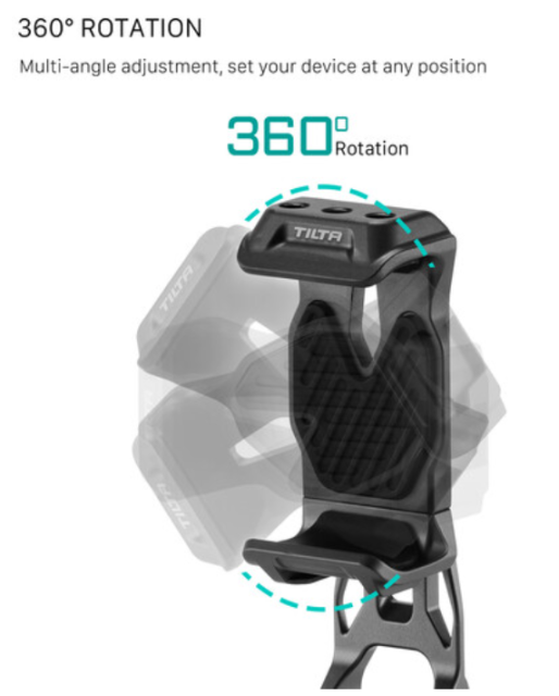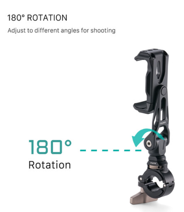 Die Tilta TA-PMB5-HBK-B drehbare Handyhalterung V2 mit Lenkerhalterung ist eine robuste, um 360° drehbare Aluminium-Handyhalterung (für Geräte mit einer Breite von 7,6 bis 9,7 cm), die sich über einen stabilen Lenkeradapter sicher am Lenker von Fahrrädern, Motorrädern oder Rollern befestigen lässt. Perfekt für Filmemacher, Vlogger oder Action-Creators, die eine stabile Handyhalterung für Hoch- und Querformataufnahmen für POV-Fahrtaufnahmen, Zeitrafferaufnahmen oder Live-Streaming benötigen.