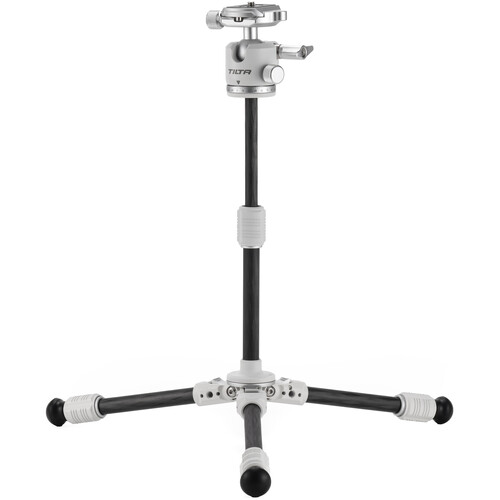 Das Tilta Tabletop-Kugelkopfstativ mit 1-stufig ausziehbaren Kohlefaserbeinen in Schneeweiß bietet vielseitige Höhenoptionen und reibungslose Kugelkopfschwenks - perfekt für leichte Kameraaufbauten unterwegs.