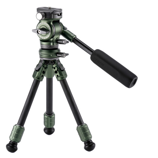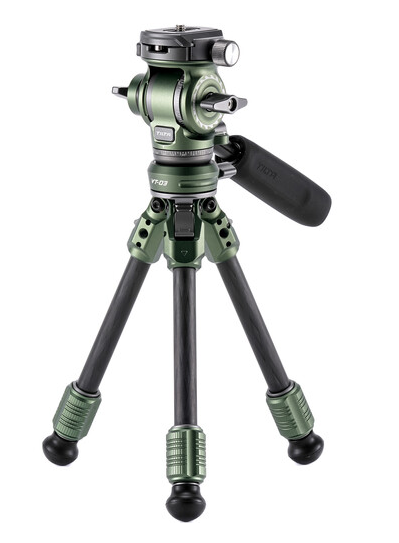 Der Tilta VT03 Tabletop Video Fluid Head mit 1-stufigen Carbonfaser-Stativbeinen in Waldgrün ist ein kompaktes, tragbares Tischstativ, das für Content-Ersteller und Filmemacher entwickelt wurde. Es verfügt über einen 360°-Arca-Fluidkopf, verstellbare Carbonfaserbeine mit Drehverschluss und einen Teleskopgriff, der bis zu 3 kg trägt und präzise Positionierung sowie vielseitige Befestigungsmöglichkeiten für Kameras und Zubehör bietet.