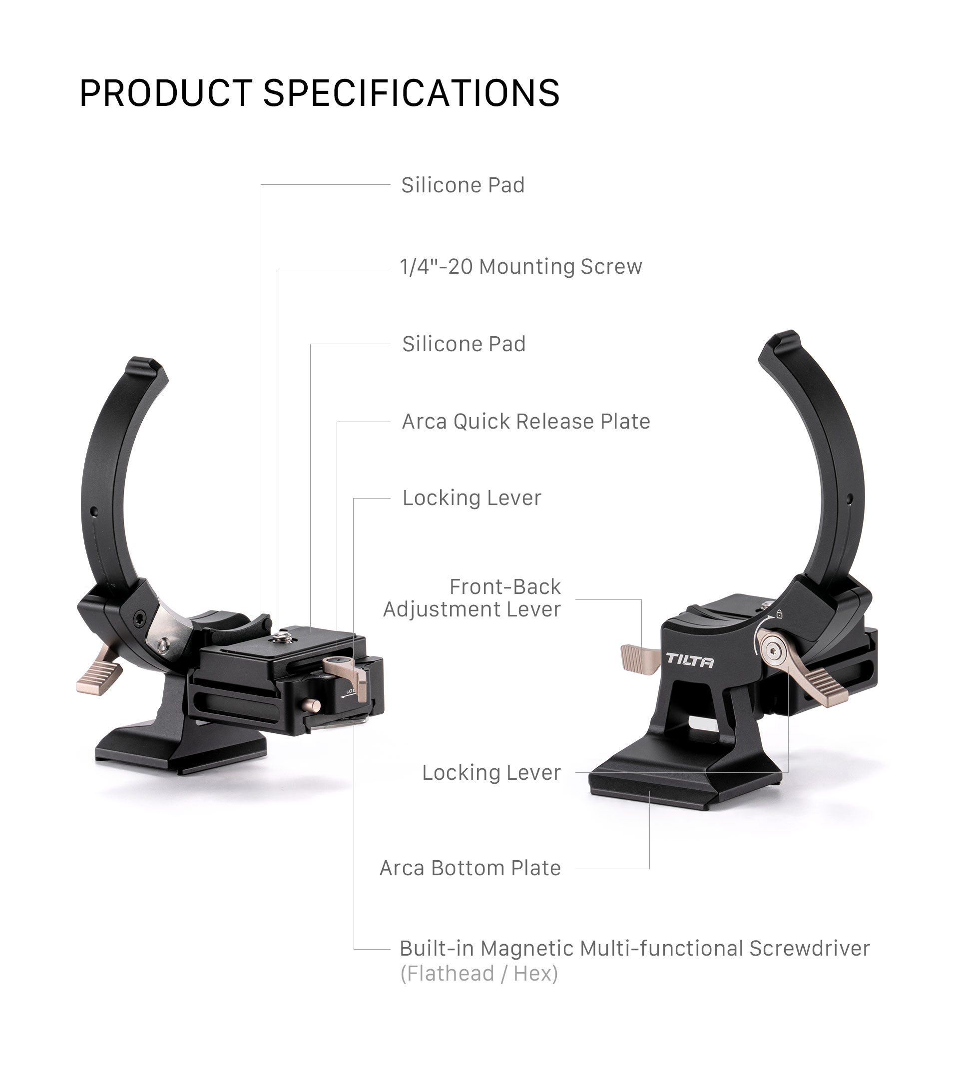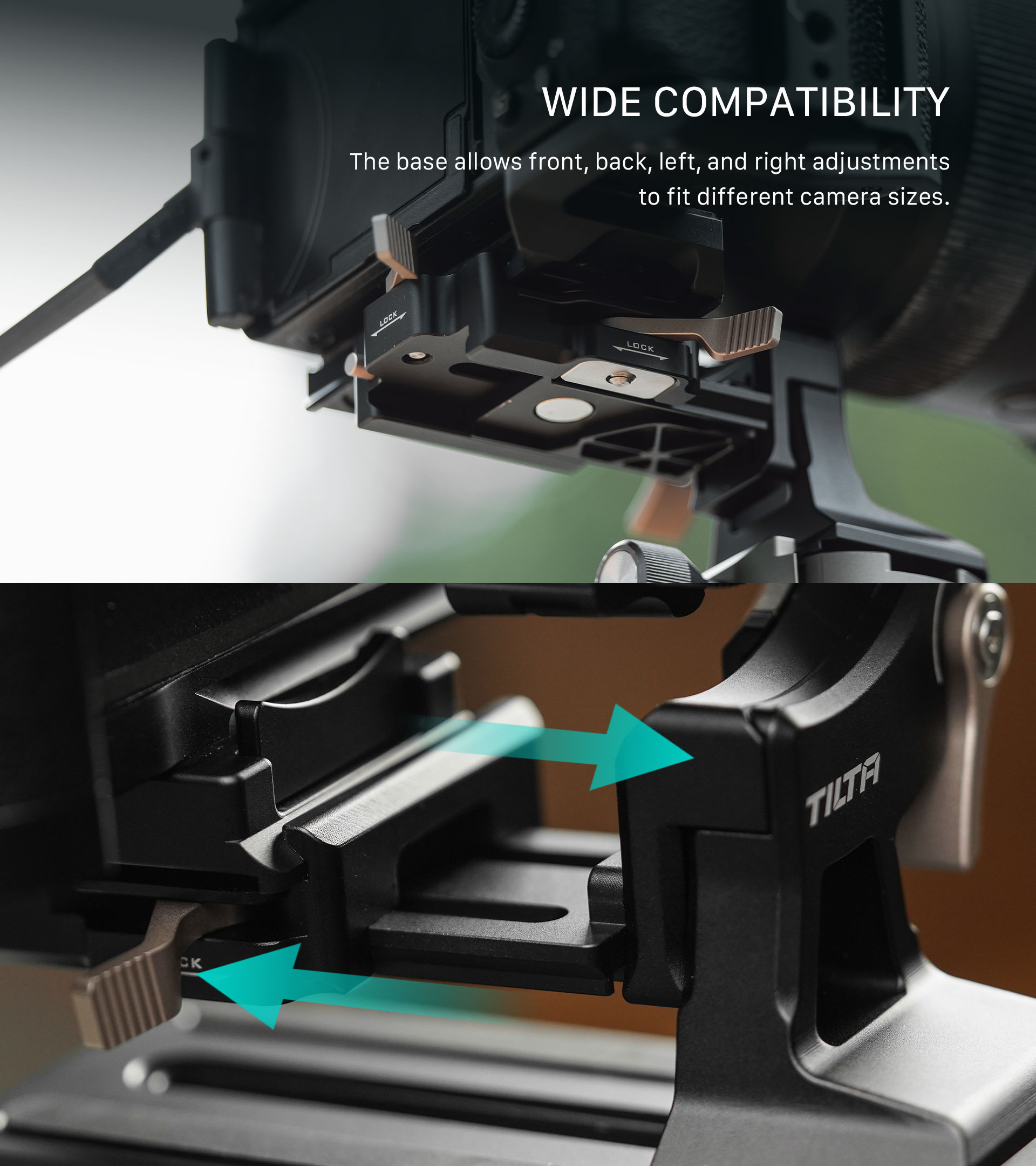 Die Grundlage dieses Zubehörs ist eine Arca-Schnellwechselplatte, die an vielen Systemen wie unserer Stativserie oder DJI Ronin Gimbals befestigt werden kann.