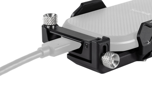 Die im Lieferumfang des Halters enthaltene Kabelklemme sichert die Verbindung zwischen Ihrer Kamera und der SSD und minimiert das Risiko von Verbindungsabbrüchen während des Gebrauchs. Die Rändelschrauben und die höhenverstellbare Kabelklemme bieten zusätzlichen Komfort für schnelle Anpassungen, so dass Sie das Setup Ihren Bedürfnissen entsprechend anpassen können.
