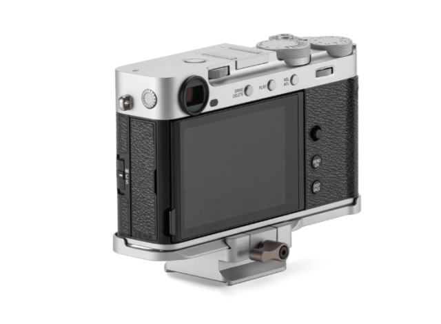Das Tilta TA-T91-A-S Vintage Camera Cage Base Kit ist ein leichtes L-Bügel aus silbernem Aluminium und Walnussholz mit einem ergonomischen Holzgriff, der speziell für die Fujifilm X-E5 entwickelt wurde. Es bietet verbesserten Handkomfort und ist mit Arca-Swiss-Schnellverschlüssen kompatibel, sodass es sich nahtlos an Gimbals und Stativen befestigen lässt, während der kompakte Retro-Look der Kamera erhalten bleibt.