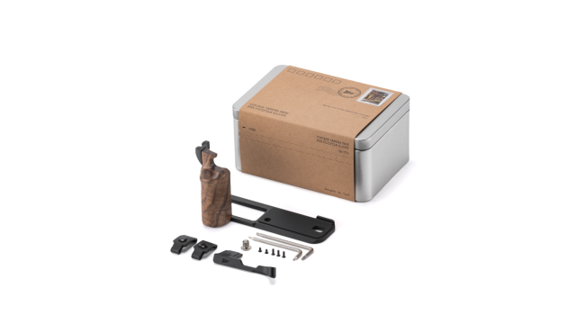 Die Basis dieses Kits ist ein L-Bracket mit einem Holzgriff aus Walnussholz, der eine komfortablere Bedienung und Handhabung der Kamera ermöglicht.
