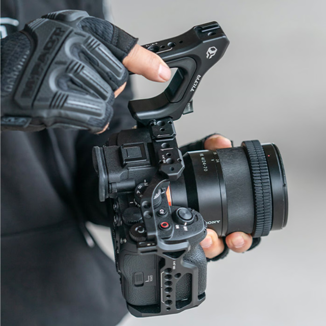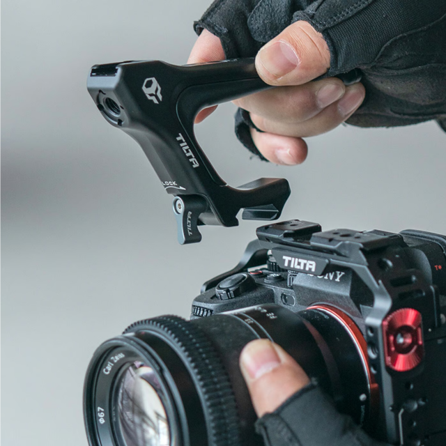 Dieser obere Griff lässt sich einfach und sicher an der Oberseite des Kameragehäuses der Sony a7 IV befestigen.