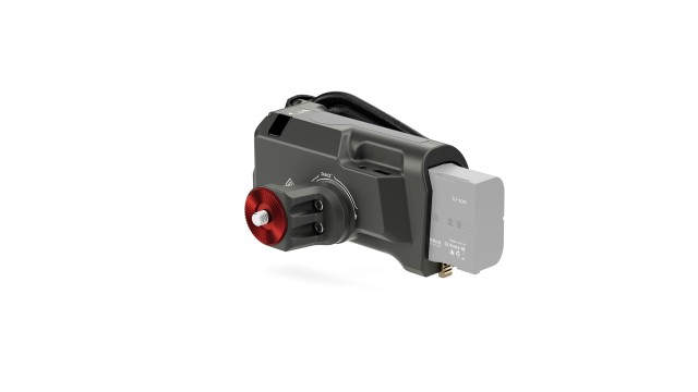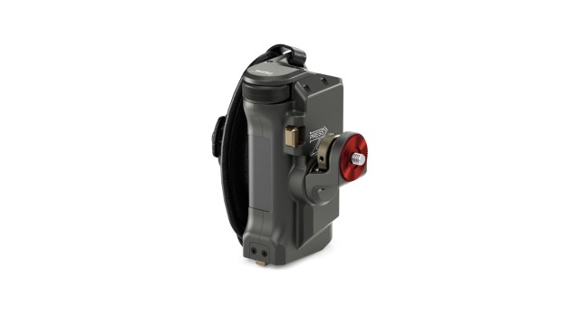 Ein Batterieanschluss an der Unterseite des Griffs ermöglicht die Verwendung einer Sony F570-Batterie, um den Nucleus Nano-Motor über den 8-V-USB-C-Stromausgang zu betreiben. Ein 12-V-DC-Ausgang ist ebenfalls in den Griff integriert.