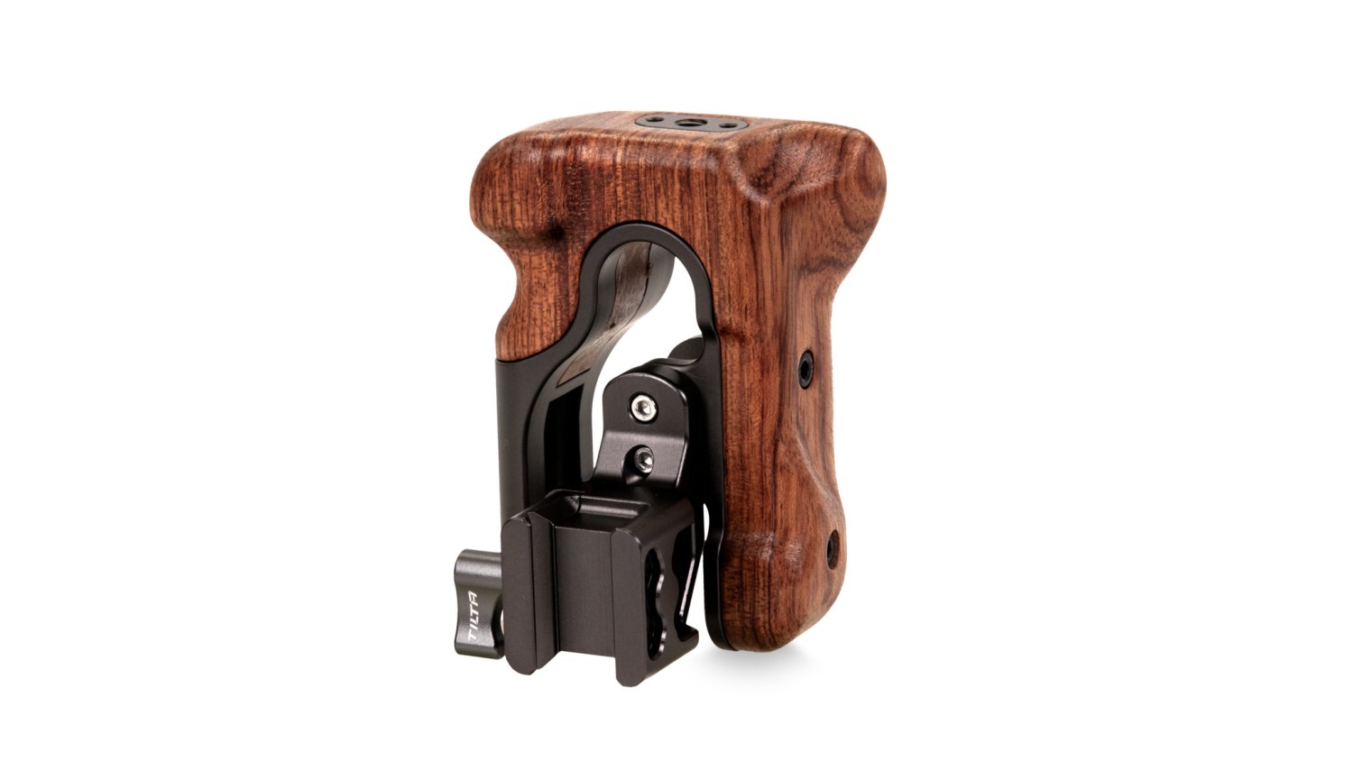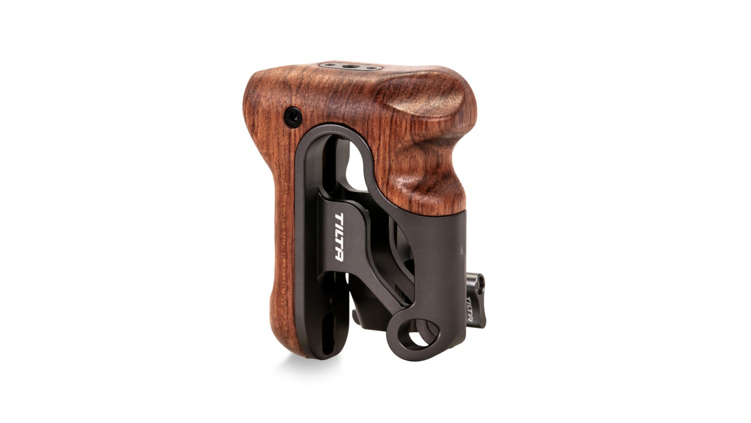 Dieser Griff wird an der rechten Seite der Tiltaing-Kamerakäfige angebracht. Sein ergonomisches Design bietet maximalen Komfort bei der Bedienung der Kamera.