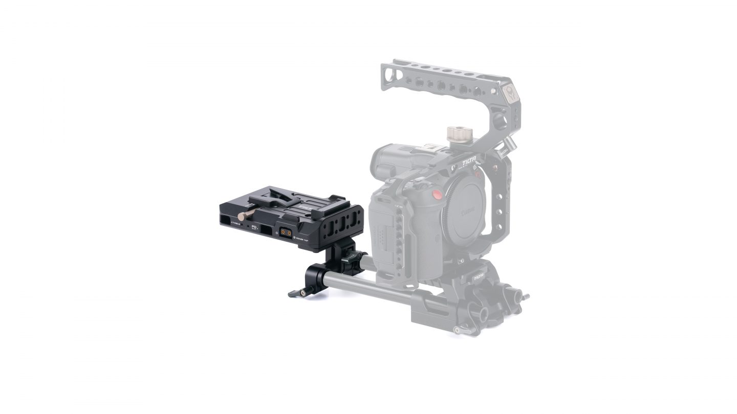 Diese intelligente V-Mount-Akkuplatte verfügt über (2) 14,8-V-P-Tap-Anschlüsse, (1) 5-V-USB-C-Anschluss und (1) 60-W-USB-C-PD-Anschluss, mit denen die Akkuplatte die für das angeschlossene Zubehör benötigte Spannung einstellen kann.