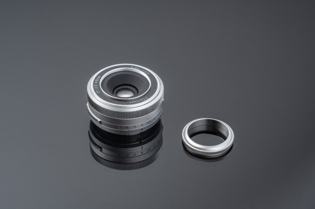 Zusätzlich enthält das Paket eine silberne Miniatur-Streulichtblende, eine kleine Metallkomponente, die auch zum Schutz des vorderen Elements des Objektivs dient, ähnlich wie beim Fujinon XF 27mm.