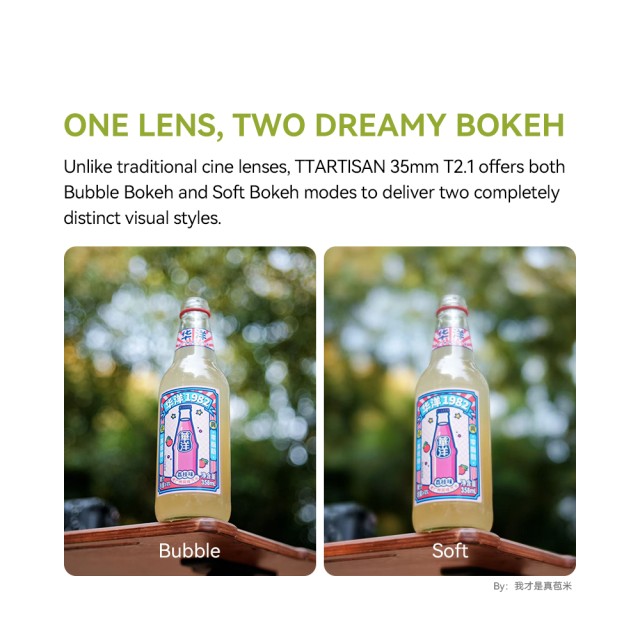Im Gegensatz zu herkömmlichen Cine-Objektiven bietet das TTARTISAN 35 mm T2.1 sowohl einen Bubble-Bokeh- als auch einen Soft-Bokeh-Modus und damit zwei völlig unterschiedliche visuelle Stile.