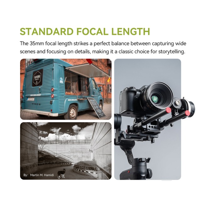 Das TTArtisan 35 mm T2.1 Canon RF ist ein manuell fokussierbares Vollformat-Kinofilmobjektiv für Filmemacher , die scharfe Optik, kinoreife Tiefe und volle kreative Kontrolle verlangen. Mit seiner lichtstarken Blende von T2.1, der präzisen manuellen Fokussierung und der robusten Ganzmetallkonstruktion ist es die ideale Wahl für professionelle Videoaufnahmen.