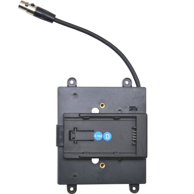 Versorgen Sie Ihren F-7H-Monitor mit einem Akku der Panasonic CGA/VB-Serie, indem Sie diese Akkuhalterung von TVLogic anschließen. Die Halterung der Panasonic CGA/VB-Serie wird an der Rückseite des F-7H-Monitors angebracht und in den 4-poligen XLR-Mini-Stromanschluss des Monitors eingesteckt. Sie liefert 12 VDC, 3A Strom.
