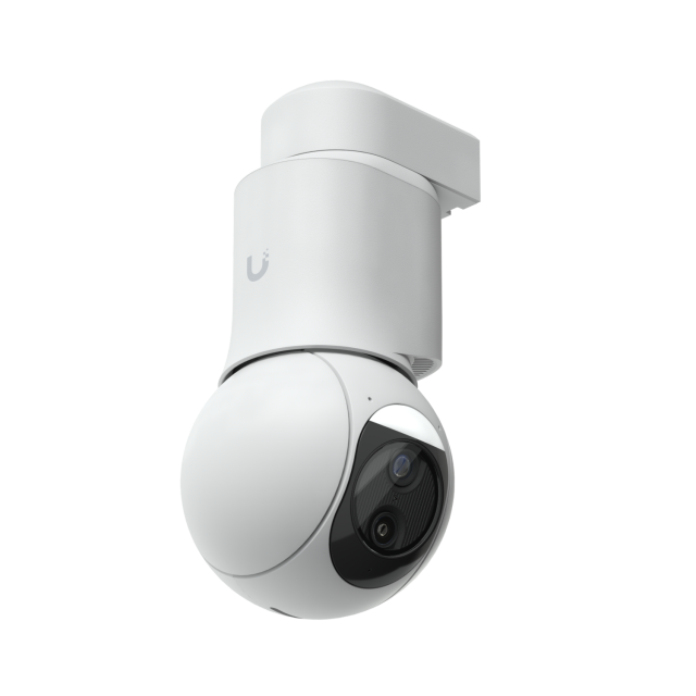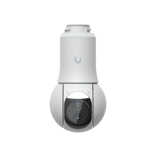 Die Ubiquiti UniFi Protect G6 PTZ – 4K Dual PTZ-Kamera in makellosem Weiß ist der Inbegriff intelligenter Außensicherheit und kombiniert fortschrittliche Dual-Objektiv-Optik mit nahtloser UniFi-Ökosystemintegration für eine beispiellose Überwachung. Im Kern sorgen zwei 1/1,8-Zoll-8-MP-Sensoren für atemberaubende 3840 x 2160 (16:9) Videos mit 30 FPS, wobei ein Weitwinkelobjektiv (F4,46 mm, ƒ/1,65) ein weitläufiges horizontales Sichtfeld von 109,9°, ein vertikales Sichtfeld von 56,7° und ein diagonales Sichtfeld von 134,1° für eine umfassende Abdeckung der Szene, während das Teleobjektiv (F16,3 mm, ƒ/2,4) einen 10-fachen Hybridzoom mit einem fokussierten Blickwinkel von 26,6° H / 15,1° V / 30,4° D ermöglicht, um entfernte Details zu erkennen. Die extrem reaktionsschnelle Schwenk-Neige-Funktion (350° Schwenk, 100° Neige) sorgt für eine dynamische Verfolgung, die durch eine integrierte IR-LED und einen Cut-Filter für eine lebendige Nachtsicht mit bis zu 30 m Reichweite ergänzt wird. Die robuste Bildverarbeitung umfasst einstellbare Farbe, Helligkeit, Schärfe, Kontrast, Weißabgleich, Belichtung, 2D/3D-Rauschunterdrückung, bewegungsbasierte Rauschunterdrückung, Maskierung, Textüberlagerung und HDR für optimale Klarheit bei jedem Licht. Das Gehäuse aus strapazierfähiger Aluminiumlegierung und Polycarbonat mit Schutzart IP66 und Manipulationsschutz IK04 arbeitet zuverlässig bei Temperaturen von -30 °C bis 50 °C (-22 °F bis 122 °F) und einer Luftfeuchtigkeit von 20-90 % ohne Kondensation und wird effizient über PoE+ (42,5–57 V DC, max. 24,5 W) über einen 10/100-MbE-RJ45-Port. Zweiwege-Audio sorgt für zusätzliche Abschreckung und Kommunikation, während ein microSD-Erweiterungssteckplatz und eine Taste zum Zurücksetzen auf die Werkseinstellungen flexible Speicherung und Wartung ermöglichen. Vielseitige Montagemöglichkeiten sind entscheidend: Im Lieferumfang enthalten ist ein Polycarbonat-Arm für Wand-, Oberflächen-, Decken- oder Mastmontage (Aluminiumadapter mit 1,5-2" Durchmesser), optional sind Eck-, Decken-, Pendel- und Leitungs-Kits für individuelle Installationen erhältlich. Mit einem Gewicht von nur 1–1,1 kg und einem kompakten Profil von Ø 107,2 mm (104,5–111 mm B x 203,2–230,2 mm H) ist die G6 PTZ NDAA-konform und zertifiziert (CE, FCC, IC) und eignet sich ideal für den Einsatz in Wohn-, Gewerbe- oder Unternehmensbereichen, in denen Zuverlässigkeit und Präzision gefragt sind.