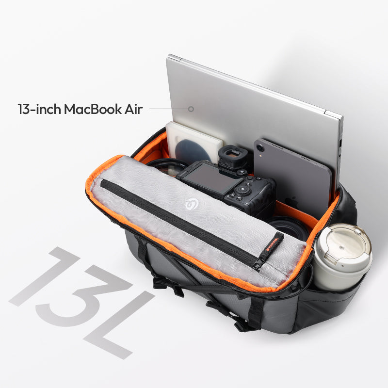 Entdecken Sie die Ulanzi SU02 13L Hoshino Crossbody Bag B163, die für Fotografen und Reisende entwickelt wurde, die Stil und Funktionalität suchen. Mit einem Fassungsvermögen von 13 Litern bietet diese leichte, wasserabweisende Tasche Platz für ein 13-Zoll-MacBook Air, eine Kamera, Objektive und Zubehör. Der ergonomische Dreipunktgurt sorgt für Komfort, während anpassbare EVA-Trennwände stoßfesten Schutz bieten. Mit ihrem diebstahlsicheren Design, dem schnellen Zugriff mit einer Hand, den Stativgurten und mehreren Fächern ist sie perfekt für Reisen, Pendler und urbane Abenteuer geeignet. Die SU02 besteht aus strapazierfähiger Polyesterfaser, wiegt nur 640 g (ohne Trennwände) und misst 38,5 x 14,5 x 24,5 cm.