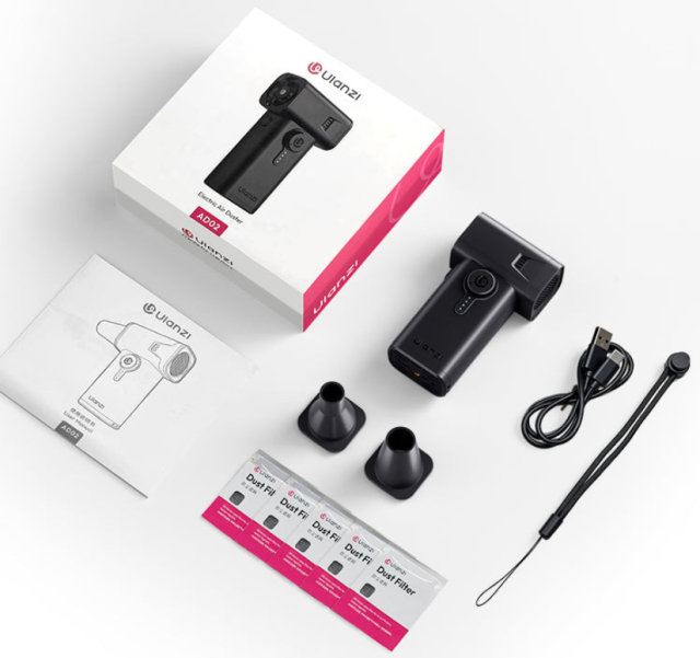 Der Ulanzi AD02 STORM Electric Air Duster II ist ein kompaktes, handflächengroßes Reinigungsgerät mit Turbolader-Luftstrom, schneller Typ-C-Aufladung und multifunktionalem Design. Er eignet sich perfekt für Kameras, Elektronikgeräte, aufblasbare Gegenstände und die Reinigung im Haushalt und liefert leistungsstarke, präzise Luftstöße mit LED-Beleuchtung und leicht austauschbaren Filtern.