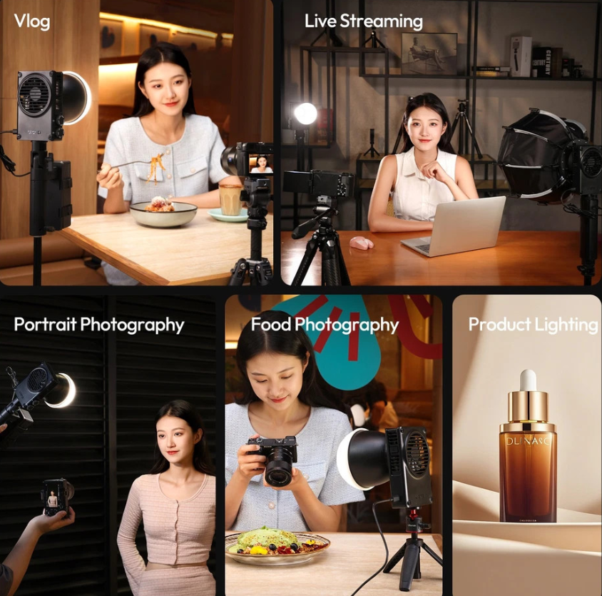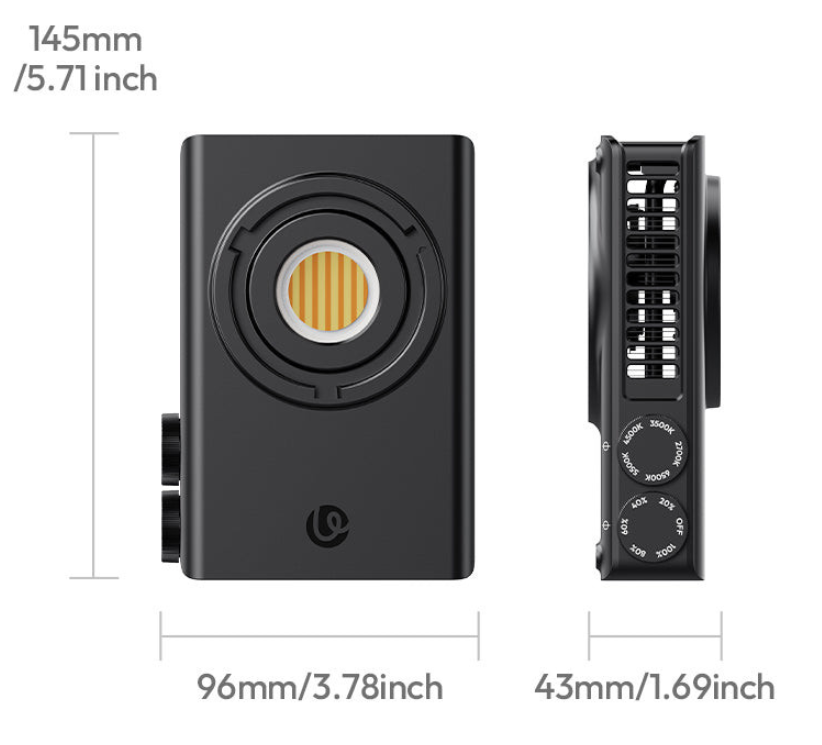 Das für den Dauereinsatz konzipierte Hohlkörperdesign mit einem Hochgeschwindigkeitslüfter sorgt für eine effiziente Kühlung, hält Ihr Licht stabil und verhindert eine Überhitzung bei langen Aufnahmen. Der C01 ist mit Mini-Bowens-Halterungen kompatibel und kann mit Reflektoren, Softboxen und Lichtmodifikatoren verwendet werden, um Ihre kreativen Möglichkeiten zu erweitern.