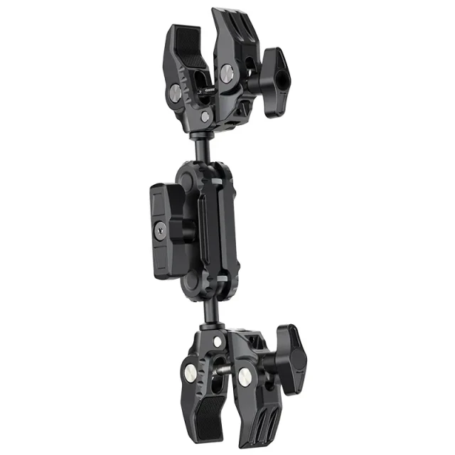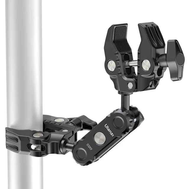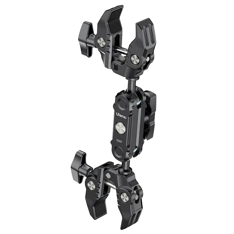 Ulanzi CO17 Superklemme mit doppeltem Kugelkopf-Magic-Arm. Diese vielseitige Superklemme lässt sich leicht an Motorrädern, Fahrrädern, Stativen, Tischen und vielem mehr befestigen. Ihr rutschfestes Design sorgt für einen sicheren Halt auf Oberflächen mit einer Breite von 1,2 cm bis 5,8 cm. Der doppelte Kugelkopf ermöglicht flexible 360°-Einstellungen und bietet vielseitige Aufnahmewinkel. Sie können die Kugelköpfe austauschen, um Ihre Möglichkeiten zu erweitern, mit einer Tragkraft von 3,5 kg. Hergestellt aus einer leichten und dennoch langlebigen Aluminiumlegierung, ist sie perfekt für Reisen und den täglichen Gebrauch. Super Clamp für super Flexibilität.