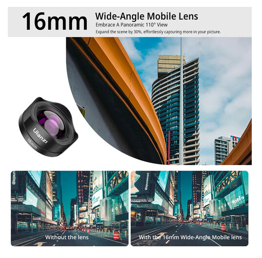 Das Ulanzi F008 CL-005 Ultraweitwinkelobjektiv der dritten Generation für Mobiltelefone wurde entwickelt, um Ihr mobiles Fotoerlebnis zu verbessern. Es bietet Ultraweitwinkelaufnahmen mit außergewöhnlicher Klarheit und minimaler Verzerrung. Mit einer Brennweite von 16 mm und einem weiten Blickwinkel von 110° erfasst dieses Objektiv mühelos weitläufige Szenen und eignet sich ideal für Landschafts-, Gruppen- oder Architekturaufnahmen. Das Objektiv bietet eine 0,5-fache Vergrößerung und verfügt über ein optisches Design mit 6 Elementen in 5 Gruppen, um eine hohe Bildqualität mit lebendigen Farben und scharfen Details zu gewährleisten.