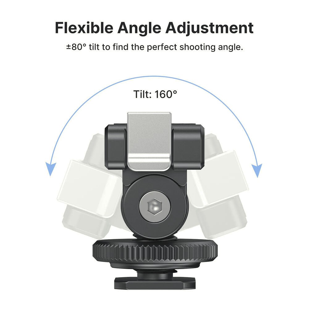 Eine integrierte 1/4"-20-Gewindebasis erweitert die Kompatibilität der Befestigung, sodass der Adapter für eine Vielzahl von professionellen Rigs und Zubehörteilen verwendet werden kann. Ob beim Vloggen, beim Filmen von Action-Aufnahmen oder beim Aufbau einer kompakten Kameraausrüstung – dieser Cold-Shoe-Adapter bietet Zuverlässigkeit, Flexibilität und Komfort.