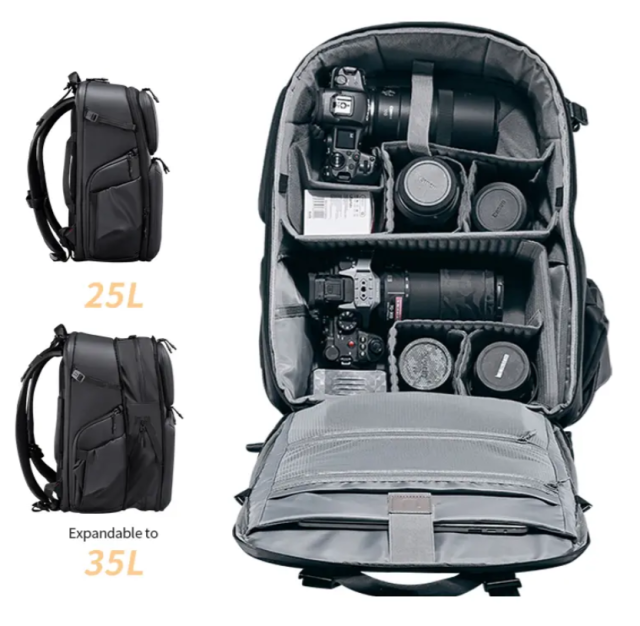 35 l Fassungsvermögen (erweiterbar auf 40 l), ideal für bis zu 2 Kameras, 6 Objektive und Drohnenzubehör
