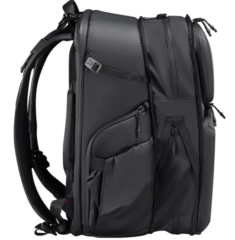 Der Rucksack besteht aus hochwertiger wasserdichter Polyesterfaser und verfügt über einen verbesserten Hartschalenschutz. Er bietet hervorragenden Schutz vor Witterungseinflüssen und verfügt gleichzeitig über Diebstahl- und Verlustschutzfunktionen. Die ergonomische, bogenförmige Rückwand und die verstellbaren Schultergurte, der Brustgurt und der Hüftgurt sorgen für Komfort, selbst bei langen Shootings oder Reisen. Für zusätzlichen Komfort verfügt die Tasche über zwei seitliche Schnellzugriffsreißverschlüsse, sodass Sie an Ihre Ausrüstung gelangen, ohne den gesamten Rucksack abnehmen zu müssen. Die Tasche verfügt außerdem über eine Trocken- und Nass-Trennaufbewahrung, die Ihre empfindliche Ausrüstung und feuchten Gegenstände voneinander trennt, sowie über ein anpassbares Erweiterungssystem mit Schlaufen und Gurten für einfaches Herausnehmen der Ausrüstung und verschiedene Trageoptionen. Mehrere doppelte Tragegriffe bieten Ihnen die Flexibilität, den Rucksack auf verschiedene Arten zu tragen, perfekt für unterschiedliche Reise- und Aufnahmesituationen.