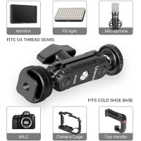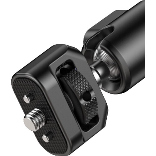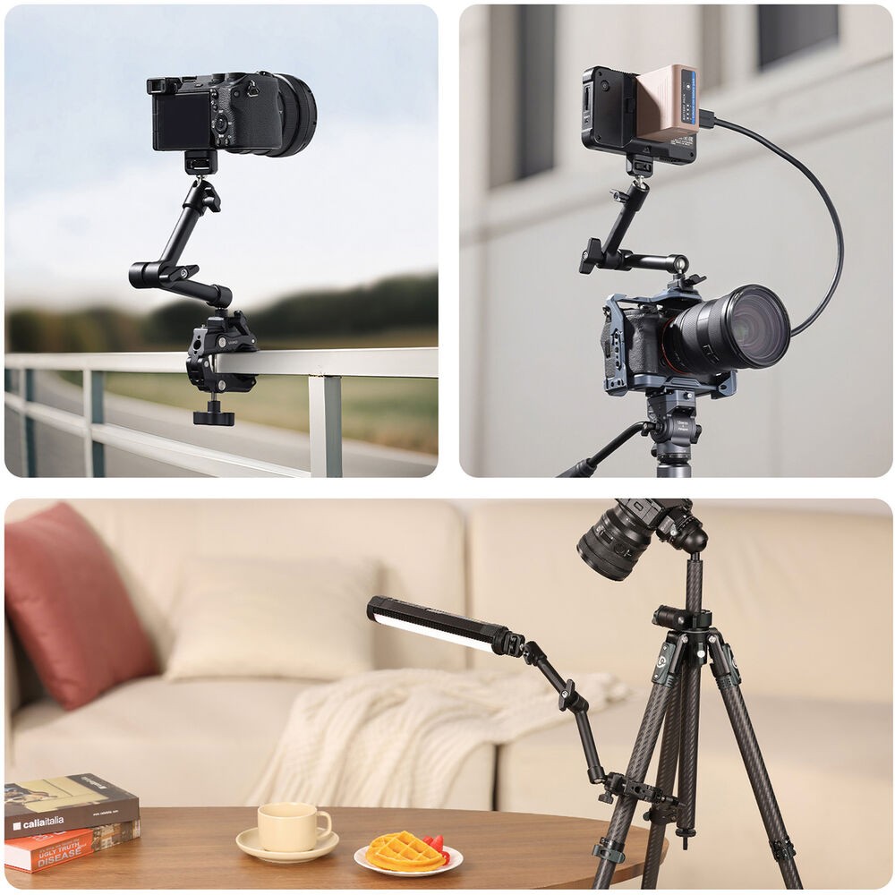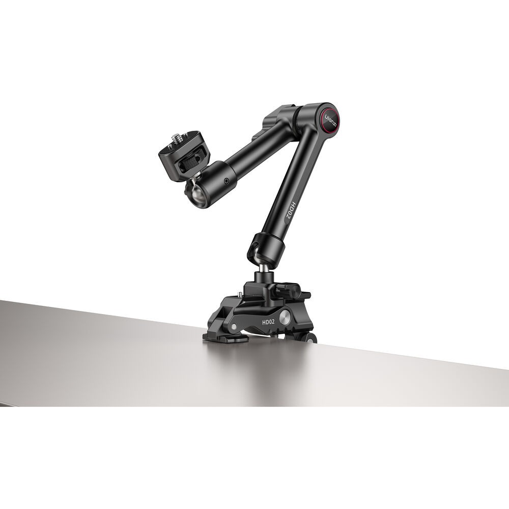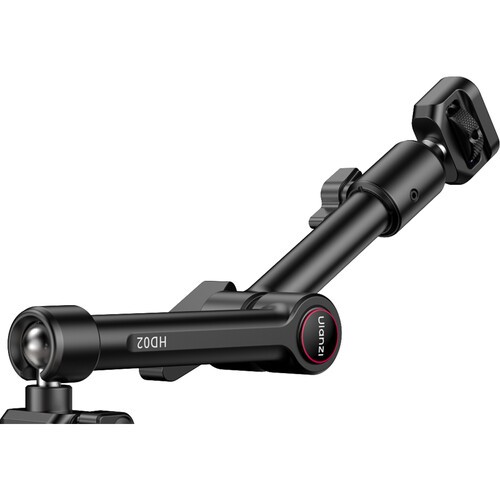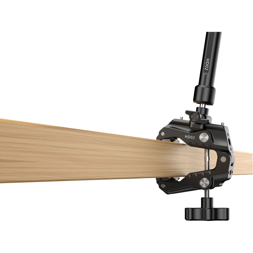 DerHD02 Magic Arm mit Crab ClampvonUlanzi ist ein 10-Zoll-Magic-Arm mit einer Tragkraft von 6,6 lb. Befestigen Sie Kameras, Leuchten oder anderes Zubehör mit der 1/4"-20-Schraube mit ARRI-Fixierstiften oder den 1/4"-20- und 3/8"-16-Gewindebohrungen. Befestigen Sie den Arm mit der mitgelieferten Klemme mit rutschfesten Polstern an Oberflächen mit einer Dicke zwischen 0,86 und 3,4 Zoll. Dank des 360°-Kugelkopfes an jedem Ende und der 360°-Drehung zwischen den beiden Armabschnitten lässt sich der Winkel nach der Montage ganz einfach einstellen.