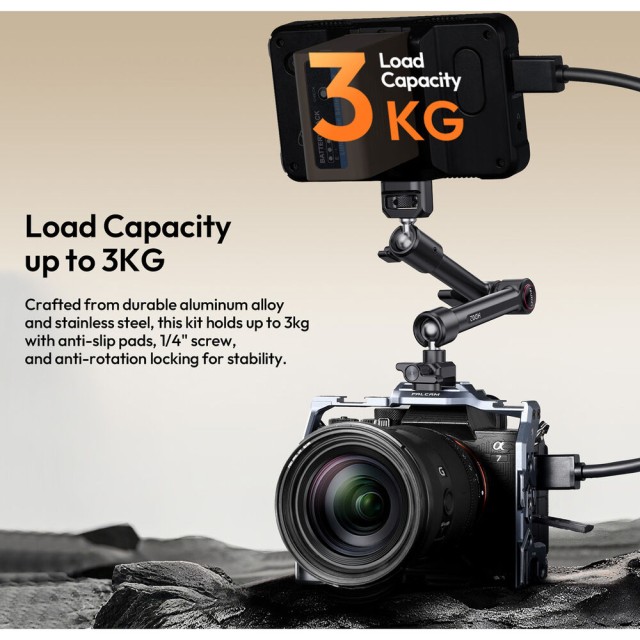Das Ulanzi HD02 10-Zoll-Magic-Arm-Kit T098 ist ein Universalarm für Kameras und Camcorder. Mit einer Länge von 10 Zoll ermöglicht es eine flexible Positionierung Ihrer Geräte. Ideal für die stabile Befestigung von Monitoren, Leuchten, Mikrofonen und anderem Zubehör. Die robuste Konstruktion sorgt für Zuverlässigkeit beim Filmen und Fotografieren. Verbessern Sie Ihre Produktion mit diesem hochwertigen Magic-Arm-Set von Ulanzi.