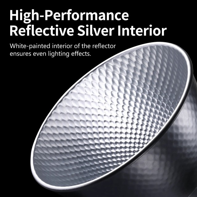 Der Ulanzi HT002 7" Standard Bowens Mount Reflektor-Diffusor ist ein leichter und robuster Aluminiumreflektor, der für Bowens-Mount-Leuchten entwickelt wurde. Seine reflektierende silber- und weiß lackierte Innenseite sorgt für gleichmäßiges, weiches Licht und ist somit ideal für Fotografie, Videografie und Aufnahmen unterwegs.