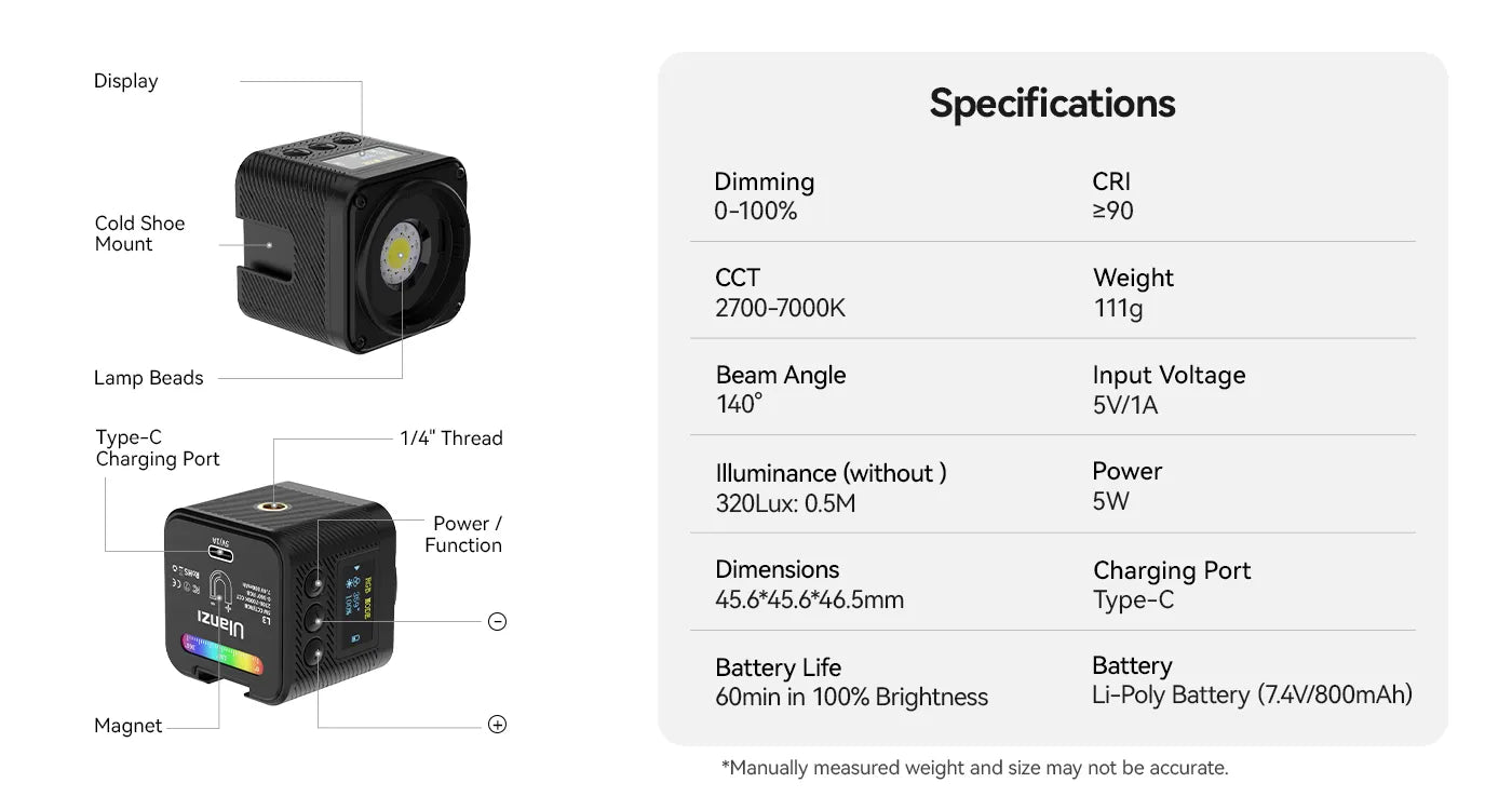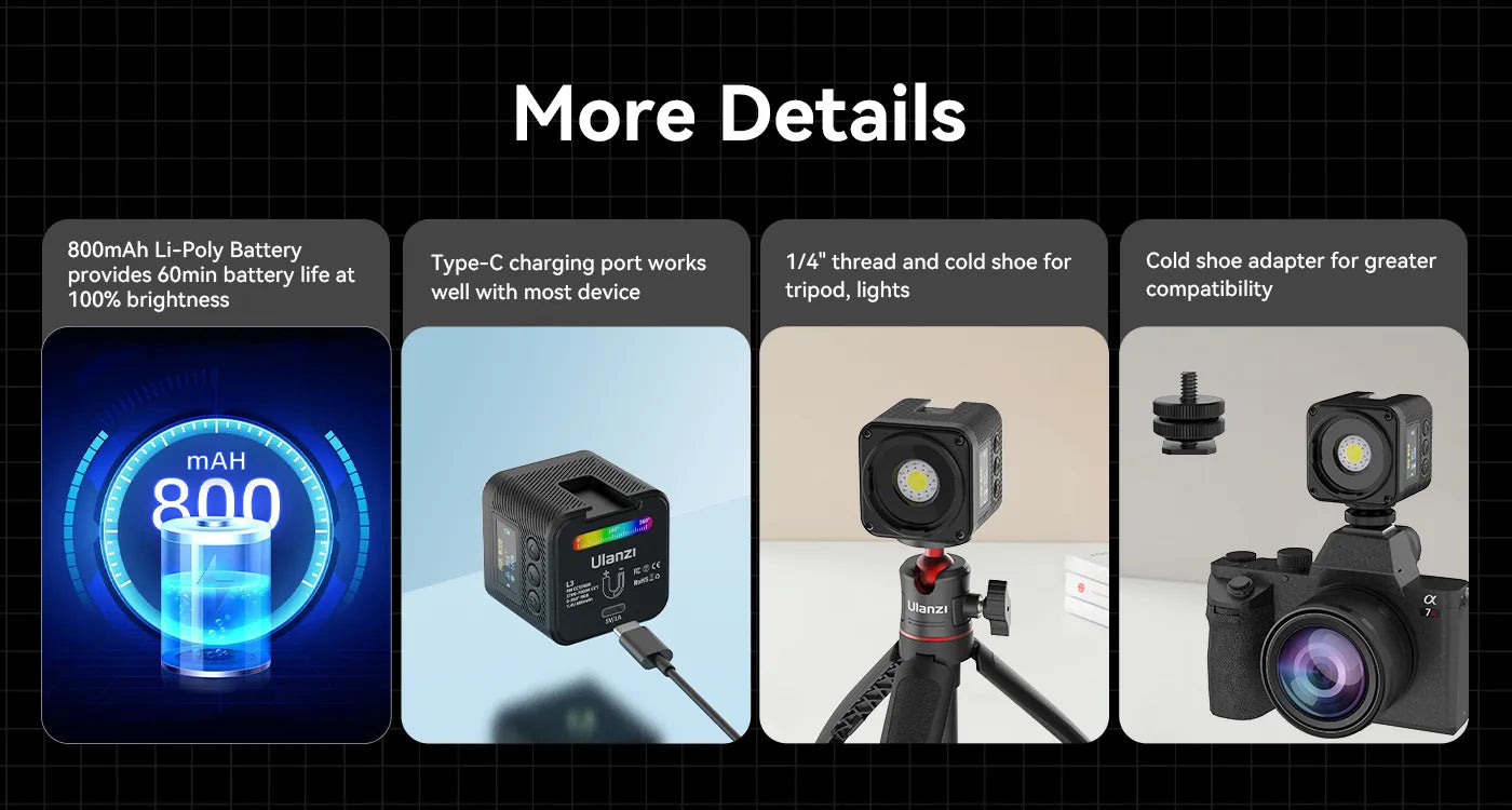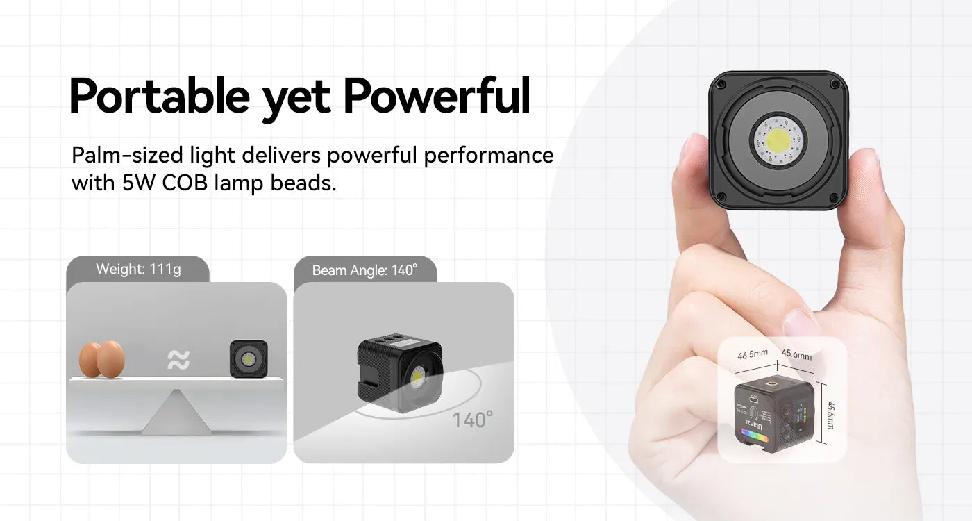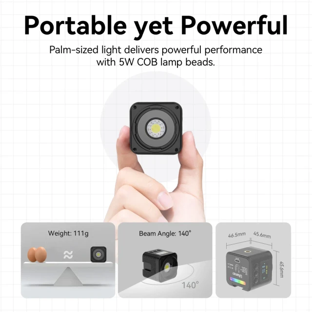 Vielseitige Beleuchtung für jede Situation. Die tragbare, handflächengroße Leuchte liefert mit 5-W-COB-Lampenperlen eine starke Leistung. 20FX für unbegrenzte Kreativität.