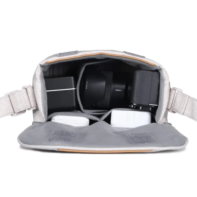 Die Ulanzi Sling Bag B011 bietet Fotografen eine vielseitige, platzsparende Lösung für den Transport wichtiger Utensilien. Mit Abmessungen von 230 x 110 x 180 mm hat sie ein schlankes Profil, in das spiegellose Kameras, Objektive und Zubehör ohne überflüssiges Volumen passen. Das Fassungsvermögen von 3 Litern lässt sich durch integrierte Erweiterungsfelder auf 4 Liter vergrößern, während das DIY-Aufbewahrungssystem eine herausnehmbare, gepolsterte Trennwand und mehrere Fächer umfasst, die mit hochfestem Klettband gesichert sind und eine schnelle, werkzeuglose Neukonfiguration ermöglichen – so lassen sich sowohl Einzellinsen-Kits als auch mehrere Gegenstände unterbringen. Das Äußere aus strapazierfähigem Polyester mit wasserabweisender PU-Beschichtung hält leichtem Regen und Abrieb stand und wird durch ein weiches, mit Samt gefüttertes Innenfutter ergänzt, das die Ausrüstung vor Stößen aus bis zu 2 m Höhe schützt. Zusätzliche Funktionalität bieten eine verdeckte Reißverschlusstasche auf der Rückseite (100 x 50 mm) zur sicheren Aufbewahrung von SD-Karten, Batterien oder Schlüsseln sowie ein verstellbarer Nylonriemen (bis zu 120 cm Länge, 25 mm Breite) mit Schnellverschlüssen für einen nahtlosen Wechsel zwischen Ein-Schulter-Sling- oder Crossbody-Konfigurationen, wodurch das Gewicht gleichmäßig verteilt wird (maximale Belastung 3 kg). Mit einem Leergewicht von nur 235 g legt die F01 den Schwerpunkt auf Tragbarkeit, ohne dabei Abstriche bei der Organisation zu machen, und ist damit eine zuverlässige Wahl für Stadtentdecker oder Reisende, die schnellen Zugriff und Schutz benötigen.