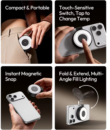 Das Ulanzi LM21 Magnetic Fill Light ist ein vielseitiges Beleuchtungszubehör für Kreative, die eine zuverlässige Beleuchtung in kompakter und reisefreundlicher Form benötigen. Dank MagSafe-Kompatibilität lässt es sich problemlos an kompatiblen iPhones oder magnetischen Handyhüllen befestigen und sorgt so für sofortige Beleuchtung bei Selfies, Videoaufnahmen, Livestreams und Videoanrufen.