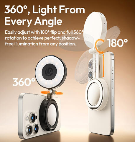 Das Ulanzi LM23 Magnet-Fülllicht für Mobiltelefone (2. Generation, weiß) ist eine kompakte und vielseitige Beleuchtungslösung, die speziell für Content-Ersteller, Vlogger und den täglichen Gebrauch entwickelt wurde. Mit seiner MagSafe-kompatiblen Magnetbefestigung, der zweifarbigen Beleuchtung und einem integrierten Spiegel sorgt es für eine vorteilhafte Ausleuchtung bei Selfies, Videoanrufen und Streaming. Mit einem integrierten Handyhalter und einer 360°-Verstellbarkeit ermöglicht das LM23 jederzeit und überall eine bequeme freihändige Nutzung.