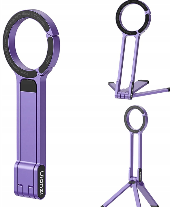 Das magnetische Smartphone-Stativ Ulanzi MA30 (≈0,22 lb) ist ein Multitool im Taschenformat in Form eines Karabiners, das Ihr Smartphone dank starker MagSafe-kompatibler Magnete an der Vorderseite sofort sicher befestigt, während die Rückseite nur magnetisches Zubehör (nicht MagSafe) unterstützt. Es lässt sich auf Taschenformat zusammenklappen und kann zwischen Handgriff, horizontalem/vertikalem Aufnehmen und stabilem Standmodus mit stufenloser Neigungsverstellung umgeschaltet werden.