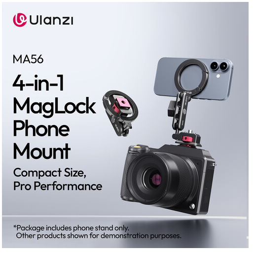 Die Ulanzi MA56 4-in-1-MagLock-Smartphonehalterung wurde für Kreative entwickelt, die Flexibilität und professionelle Leistung in kompakter Form benötigen. Dank ihres sicheren Magnetverschlusssystems ermöglicht sie eine schnelle und stabile Befestigung des Smartphones und eignet sich somit ideal für Filmaufnahmen, die Bildüberwachung und Setups mit mehreren Geräten.
