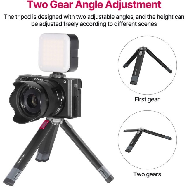 Das Ulanzi MT-22 ist ein kompaktes Mini-Stativ aus Metall mit einer 1/4"-20-Halterung, das bis zu 2,5 kg tragen kann. Seine zweiteiligen Push-Pull-Beine ermöglichen einen schnellen Aufbau, einstellbare Winkel und Aufnahmen aus niedriger Perspektive, wodurch es sich perfekt für Actionkameras, kompakte spiegellose Kameras oder Webcams eigne…