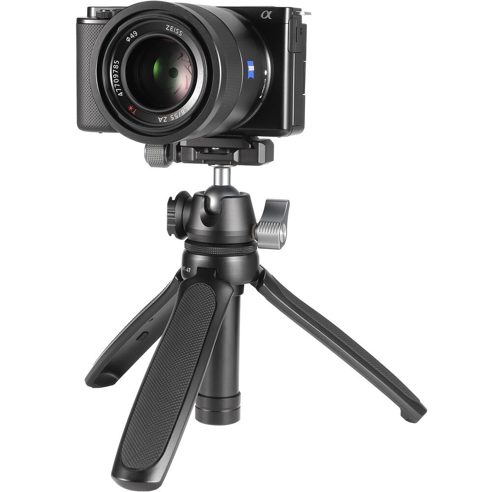 Das Ulanzi MT-47 Mini Arca-Swiss Schnellwechselplatte Tischstativ ist eine vielseitige und robuste Halterungslösung für Content-Ersteller, Fotografen und Videografen, die Wert auf Schnelligkeit und Flexibilität legen. Dieses aus Aluminium gefertigte Mini-Stativ bietet eine hervorragende Stabilität und ist mit nur 335 g dennoch leicht. Trotz seiner kompakten Größe trägt es Geräte mit einem Gewicht von bis zu 2 kg und eignet sich somit für Actionkameras, Kompaktkameras, spiegellose Systeme, Webcams und kleine Videokameras. Mit einem optionalen Adapter können auch Smartphones befestigt werden.