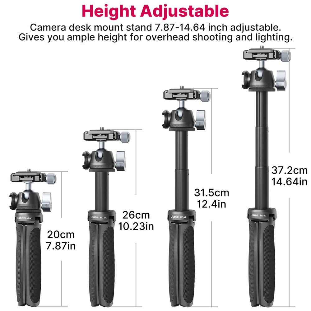 Das Ulanzi MT-47 Mini-Tischstativ ist ein kompaktes, vollständig aus Metall gefertigtes Stativ, das für Kreative entwickelt wurde, die eine schnelle Einrichtung, Tragbarkeit und professionellen Schnellwechselkomfort benötigen. Mit einem schlanken Arca-Swiss-Schnellwechselkopf, einem drehbaren Blitzschuh und einem klappbaren Design, das gleichzeitig als Kameragriff oder Selfie-Stick dient, ist es ideal für Vlogging, Streaming und Reiseaufnahmen.