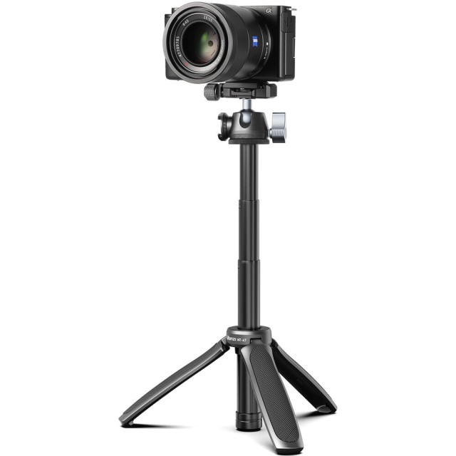 Die Stativbeine lassen sich ausklappen und bieten einen stabilen Stand auf Tischplatten. Die Gummifüße verbessern die Griffigkeit und schützen Oberflächen. Im zusammengeklappten Zustand bilden die Beine einen ergonomischen Handgriff mit rutschfester Oberfläche, sodass das MT-47 bequem als Vlogging-Griff oder Selfie-Stick verwendet werden kann. Mit einer maximalen Arbeitshöhe von 37,2 cm eignet es sich ideal für Tischaufstellungen, Aufnahmen aus niedrigen Winkeln oder Handaufnahmen.