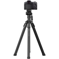 Der schwenk- und drehbare Kopf ermöglicht eine horizontale Drehung um 360° und eine vertikale Neigung um 180° und bietet so flexible Aufnahmewinkel. Die federbelastete Klemme ist für Smartphones mit einer Breite von 61 bis 97 mm geeignet, während die 1/4"-20-Halterung und der drehbare Blitzschuh die Befestigung von Kameras, LED-Leuchten oder Mikrofonen ermöglichen. Die mitgelieferte Bluetooth-Fernbedienung hat eine Reichweite von bis zu 20 m und ermöglicht so freihändiges Fotografieren oder Filmen. Ein klappbares Stativ mit Gummifüßen sorgt für Stabilität auf ebenen Flächen und ist somit ideal für Reisen, Innenaufnahmen oder die Erstellung von Inhalten im Freien. Mit einem Gewicht von nur 425 g ist das MT-70 leicht und einfach zu transportieren.