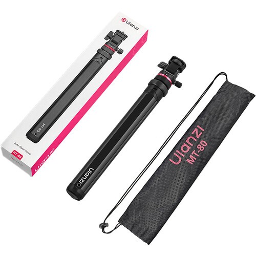 Das Ulanzi MT-80 Auto-Open Stativ ist ein leichtes, tragbares Stativ mit automatisch öffnenden Beinen, das bis zu 11 lb tragen kann und sich auf 7' ausziehen lässt. Es eignet sich für professionelle Foto-, Video- und Beleuchtungsaufnahmen. Dank seines 2-Wege-Neige-/Schwenk-Kopfes, seiner verstärkten breiten Basis und seiner Befestigungslöcher steht es auch auf unebenem Gelände oder bei windigen Bedingungen stabil.