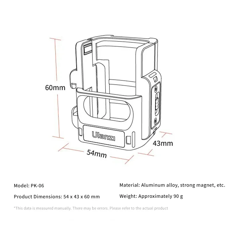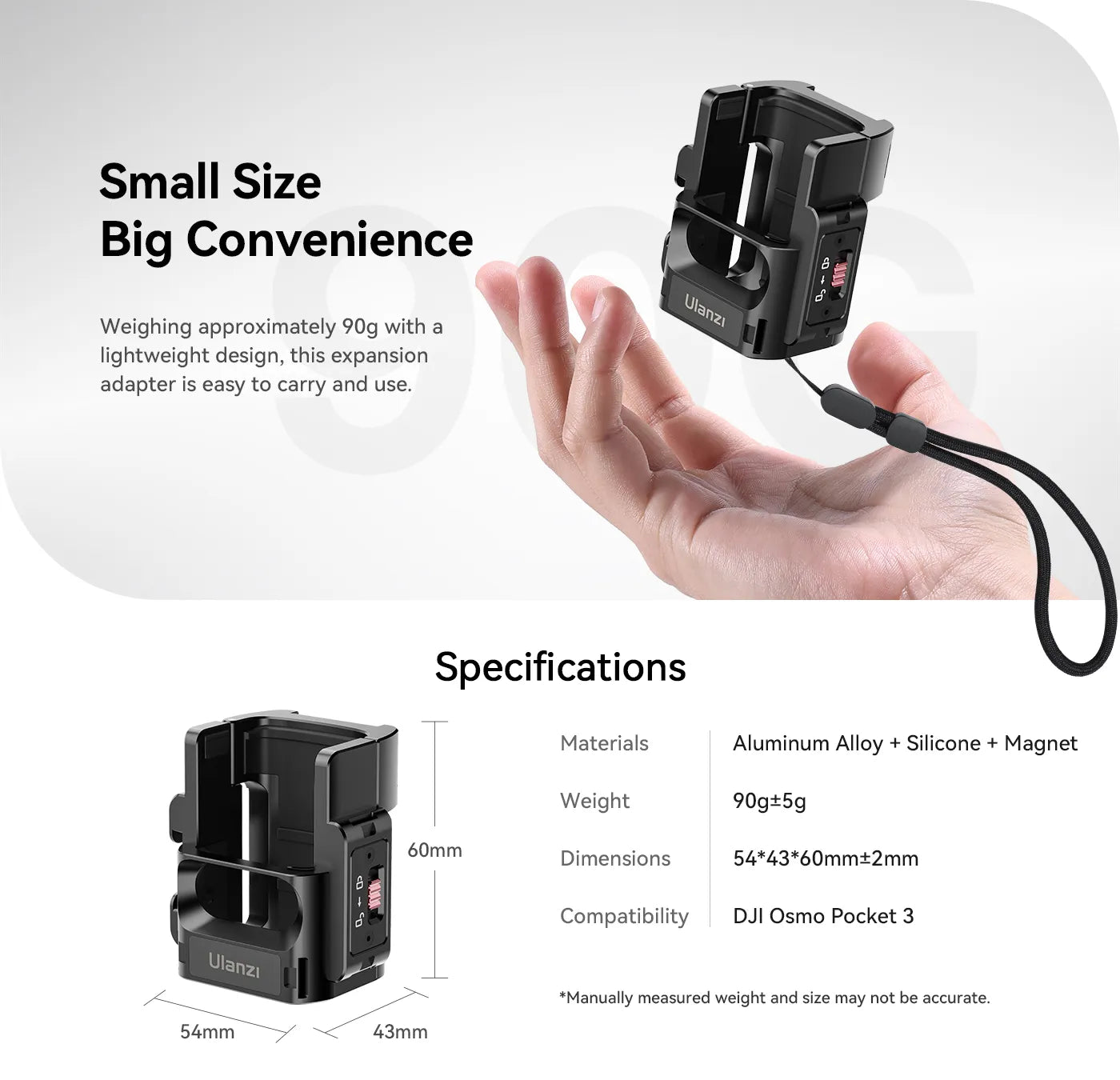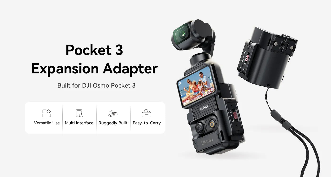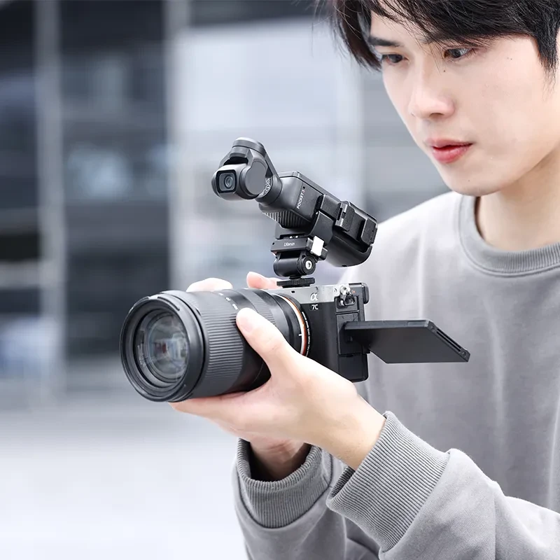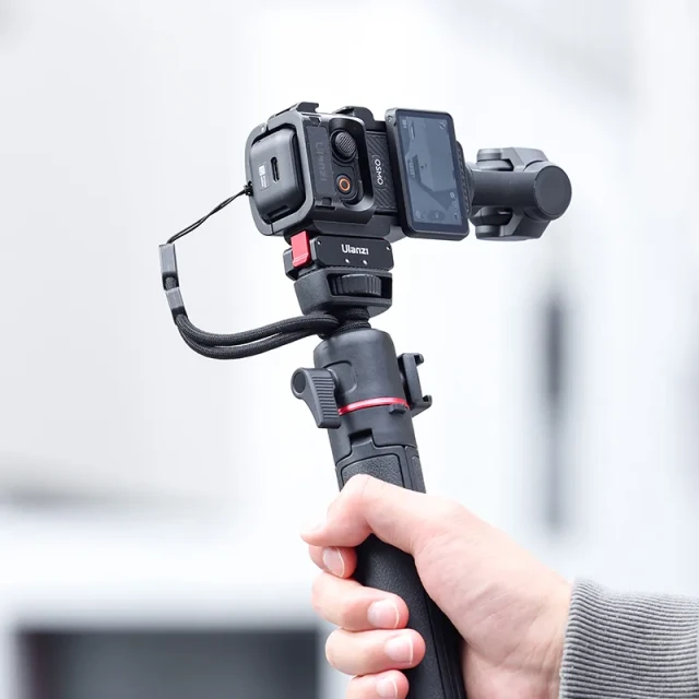 Der Ulanzi PK-06 Erweiterungsadapter C014 ist eine robuste Halterung aus Aluminiumlegierung, die Ihr DJI Osmo Pocket 3-Setup aufwertet. Mit seinem sicheren Drehverschluss verfügt er über ein 1/4-Zoll-Gewinde und Action-Cam-Halterungen für nahtlose Landschafts- oder Porträtaufnahmen. Er ist mit Stativen, Fahrradklammern und vielem mehr kompatibel und ermöglicht es Kreativen, ihre Ausrüstung ohne Unterbrechung der Aufnahme zu betreiben. Kompakt, langlebig und vielseitig – dieser Adapter ist ein Muss für mobile Filmemacher und Vlogger.