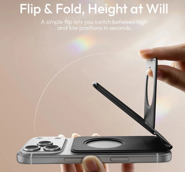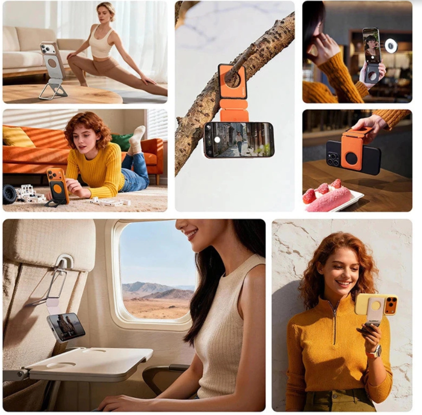 Der Ulanzi PS01 MagSnap Phone Stand ist ein eleganter, ultradünner magnetischer Smartphone-Ständer für den Schreibtisch, die Handhaltung und die Aufhängung. Er besteht aus Aluminium und veganem Leder, ist leicht und robust und trägt bis zu 400 g – damit eignet er sich perfekt für die alltägliche Smartphone-Fotografie, zum Streamen oder zur Erstellung von Inhalten.
