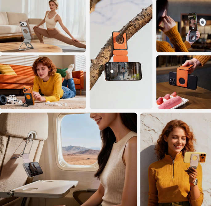 Ausgestattet mit einem zuverlässigen MagSnap-Magnetsystem lässt sich der PS01 mithilfe eines Magnetrings oder einer Hülle sicher an MagSafe-kompatiblen iPhones oder Android-Smartphones befestigen. Dies gewährleistet einen stabilen Halt für Aufgaben wie Videoanrufe, Streaming, Surfen oder das Aufnehmen von Inhalten.