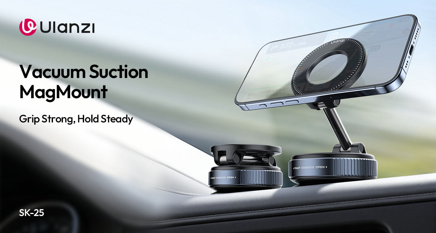 Befestigen Sie Ihr Smartphone überall mit dem Ulanzi SK-25, einer kompakten MagSafe-kompatiblen Halterung mit starker Vakuumsaugkraft und flexiblen Blickwinkeln. Entwickelt für Kreative, Pendler und Multitasker, die unterwegs die Hände frei haben möchten.