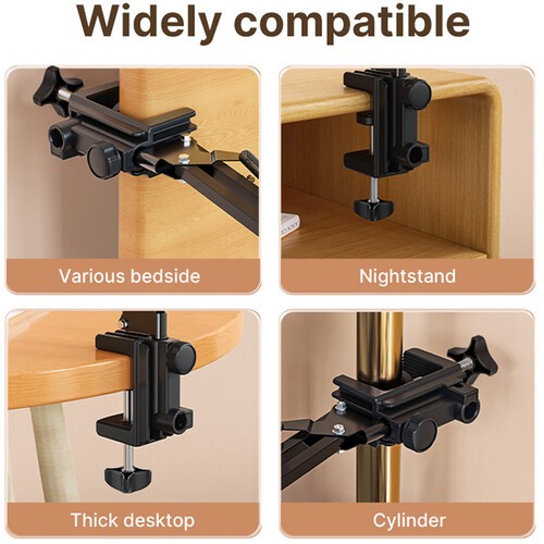 Diese Dual-Arm-Tischhalterung für Smartphones und Tablets von Ulanzi ähnelt herkömmlichen Schreibtischlampen und wurde entwickelt, um Ihnen ein ergonomischeres, komfortableres und vielseitigeres Seherlebnis beim Livestreaming, beim Surfen in sozialen Medien im Bett oder beim Videochatten mit Ihren Lieben zu bieten. Die Klemme lässt sich sicher an jedem Schreibtisch, Kopfteil oder Pfosten mit einer Dicke oder einem Umfang von bis zu 4 cm befestigen. Die federbelastete Klemme kann Geräte mit einer Breite von 11,5 cm bis 33 cm aufnehmen und eignet sich somit ideal für Smartphones bis hin zu großen Tablets. Nach der Installation können Sie dank einer drehbaren Basis, drei Drehpunkten und einer 10 cm langen Halterung mit 360°-Geräterotation einen extrem großen Einstell- und Ausziehbereich genießen. Mit dem doppelten 33-cm-Doppelfedermechanismus kann die Einstellung mit einer Hand vorgenommen werden und bleibt stabil.