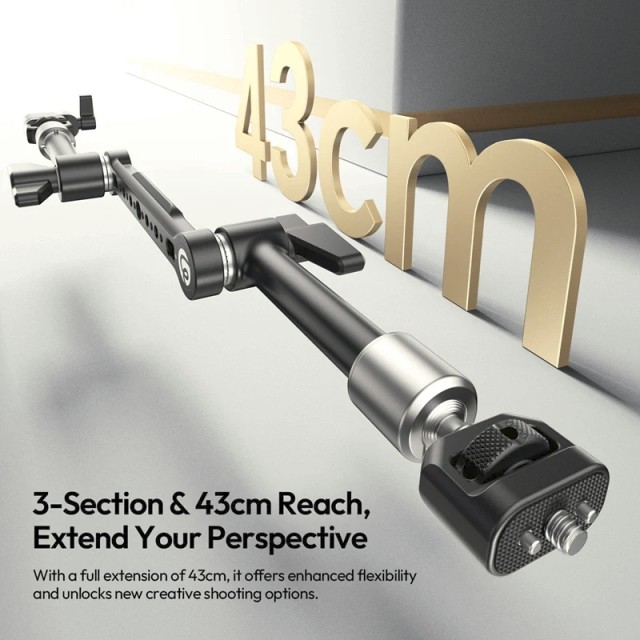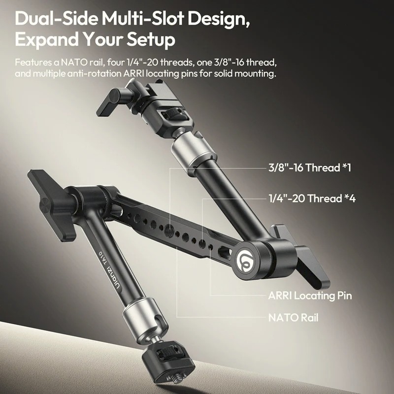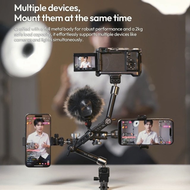 Der Ulanzi TA10 3-teilige Magic Articulating Arm wurde für Kreative entwickelt, die maximale Flexibilität und zuverlässige Stabilität in einer kompakten Lösung benötigen. Mit seinem dreiteiligen Gelenkdesign und einer Auszugslänge von insgesamt 43 cm eröffnet dieser Arm mehr kreative Aufnahmewinkel für Live-Monitoring, Überkopfaufnahmen vom Schreibtisch, POV-Tracking und komplexe Rig-Konstruktionen.